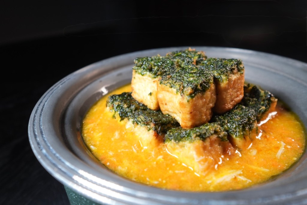 大閘蟹粉手作菠菜豆腐。(屾淼苑提供)