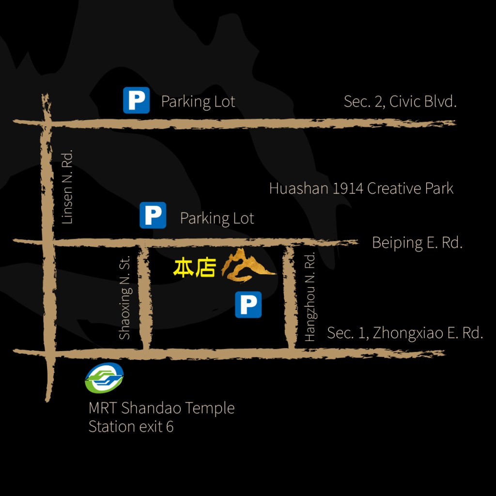 Bus No. 205, 212, 212 Express, 262, 262 Shuttle, 276, 299, 605, Zhongxiao Main Line, or Kuo-Kuang Bus — Alight at Huashan 1914 Creative Park, then walk about 5 minutes.