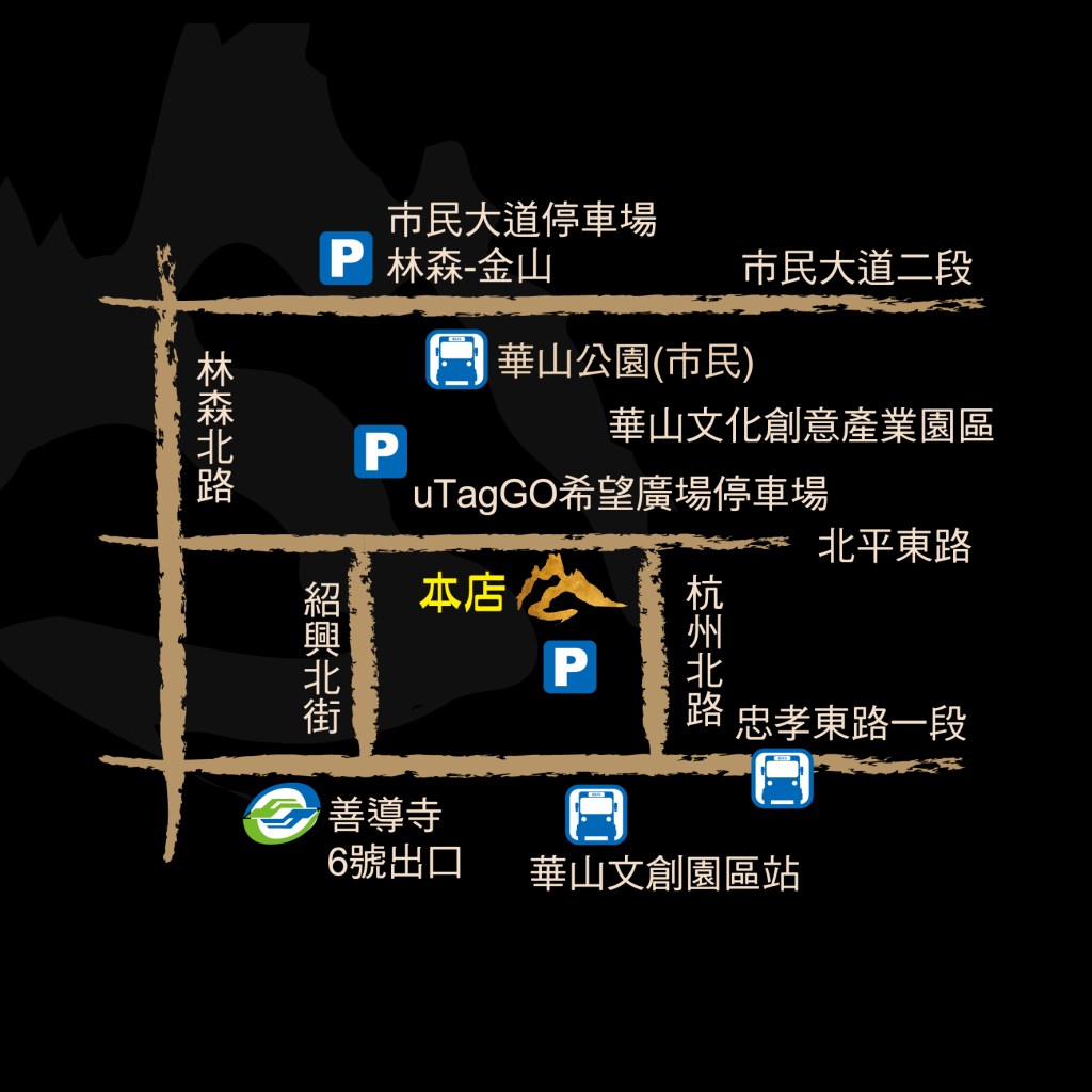 搭乘板南線至善導寺站6號出口,步行約5分鐘,即抵達屾淼苑。